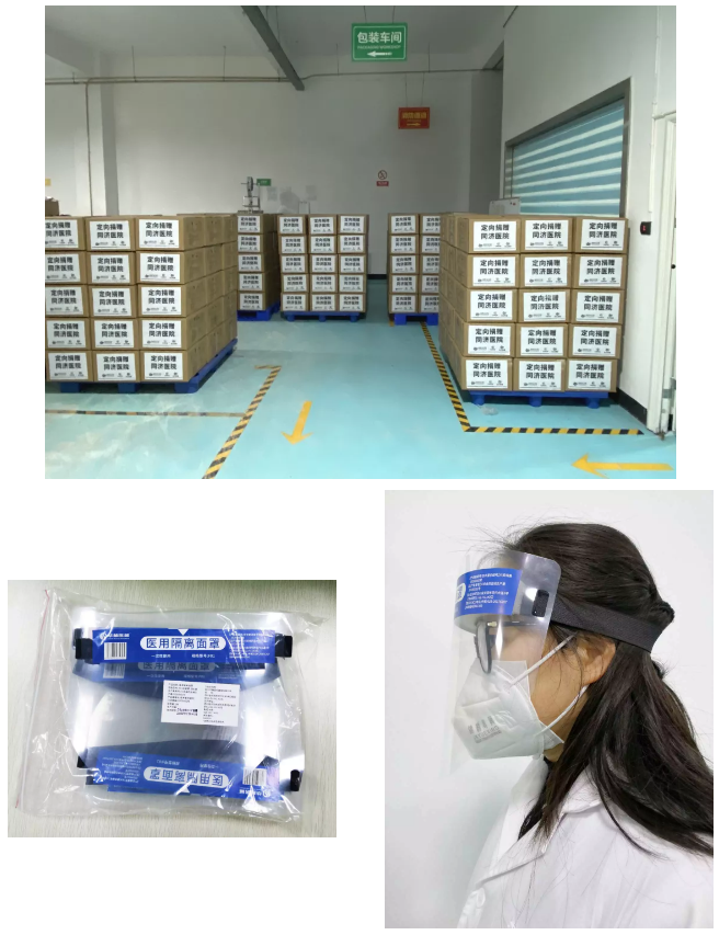 图为捐赠物资:医用防护面罩